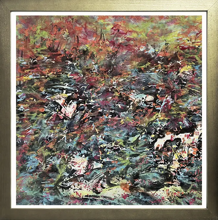 • Composition: The central vertical white space resembles a mountain stream, while surrounding colors transform into branches, leaves, and floral shadows, radiating growth and expansive energy.
